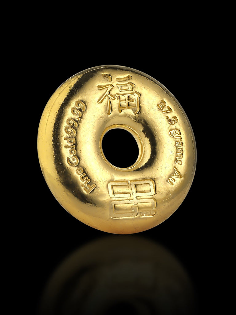 The Tael features a soft round donut shape with a centre hole, and the Chinese characters ‘吉祥如意’ which translates to ‘Wishing you good luck and great fortune’.
