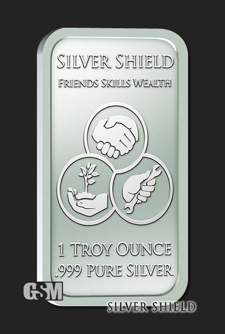 These awesome 1oz silver bars are produced by the Golden State Mint as part of their Silver Shield series, designed by Chris Duane.