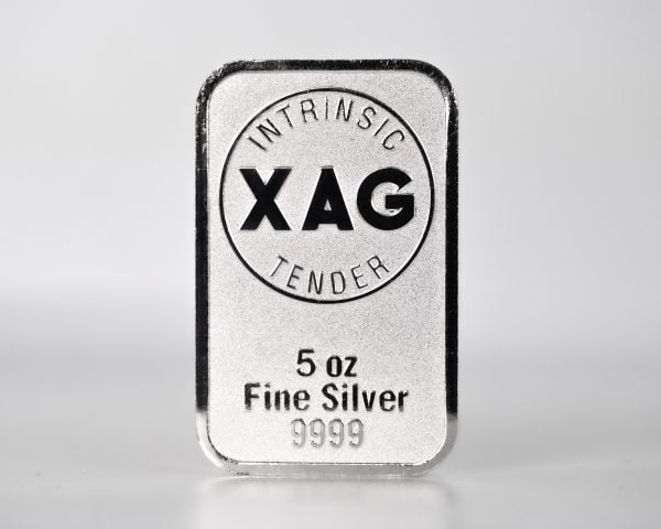 The Intrinsic Tender XAG 5oz Silver Bar is sleek in traditional 5oz silver bar dimensions, giving investors a great looking bar at a great price.