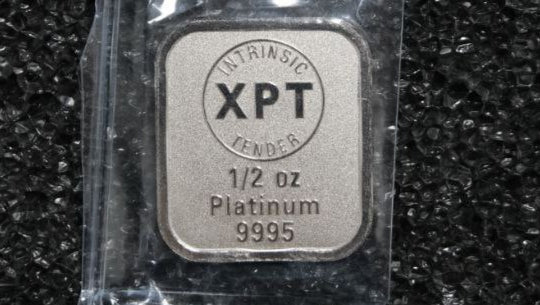 The latest in the Intrinsic Tender range is the 1/2oz XPT minted bar. Produced locally at a refinery here in Victoria, it is a minted bar within sealed plastic packaging.
